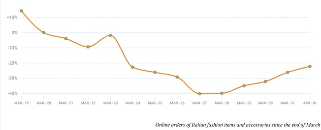 Being the most terrible affected country in the world, Italian fashion retailers have seen a 40% fall in orders of fashion products for the last two months. 26% down in revenue is also reported over the same period.