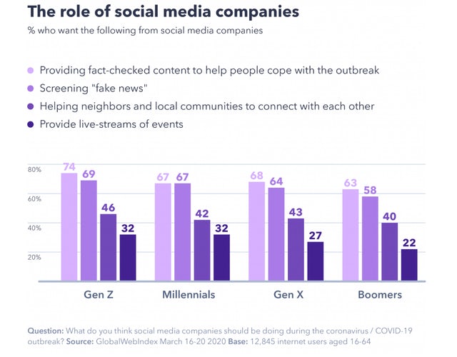 74% of Gen Z want fact-checked content from social media about covid19